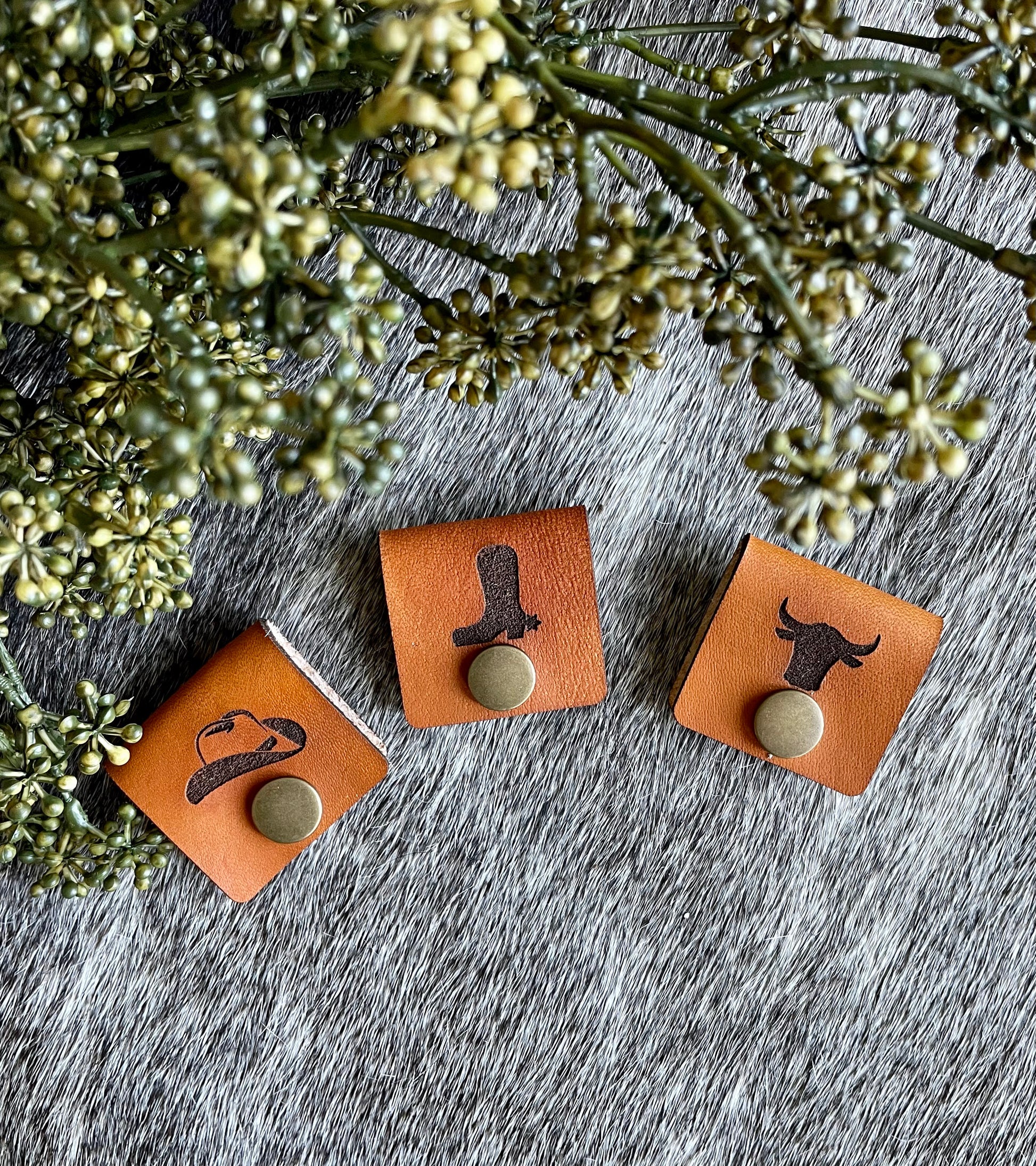 These fun little cord keepers are great for your smaller thinner cords. 1 1/4" wide and 1 1/2" long. When laid flat the length is 3". 1 to 2oz of real lather used.
