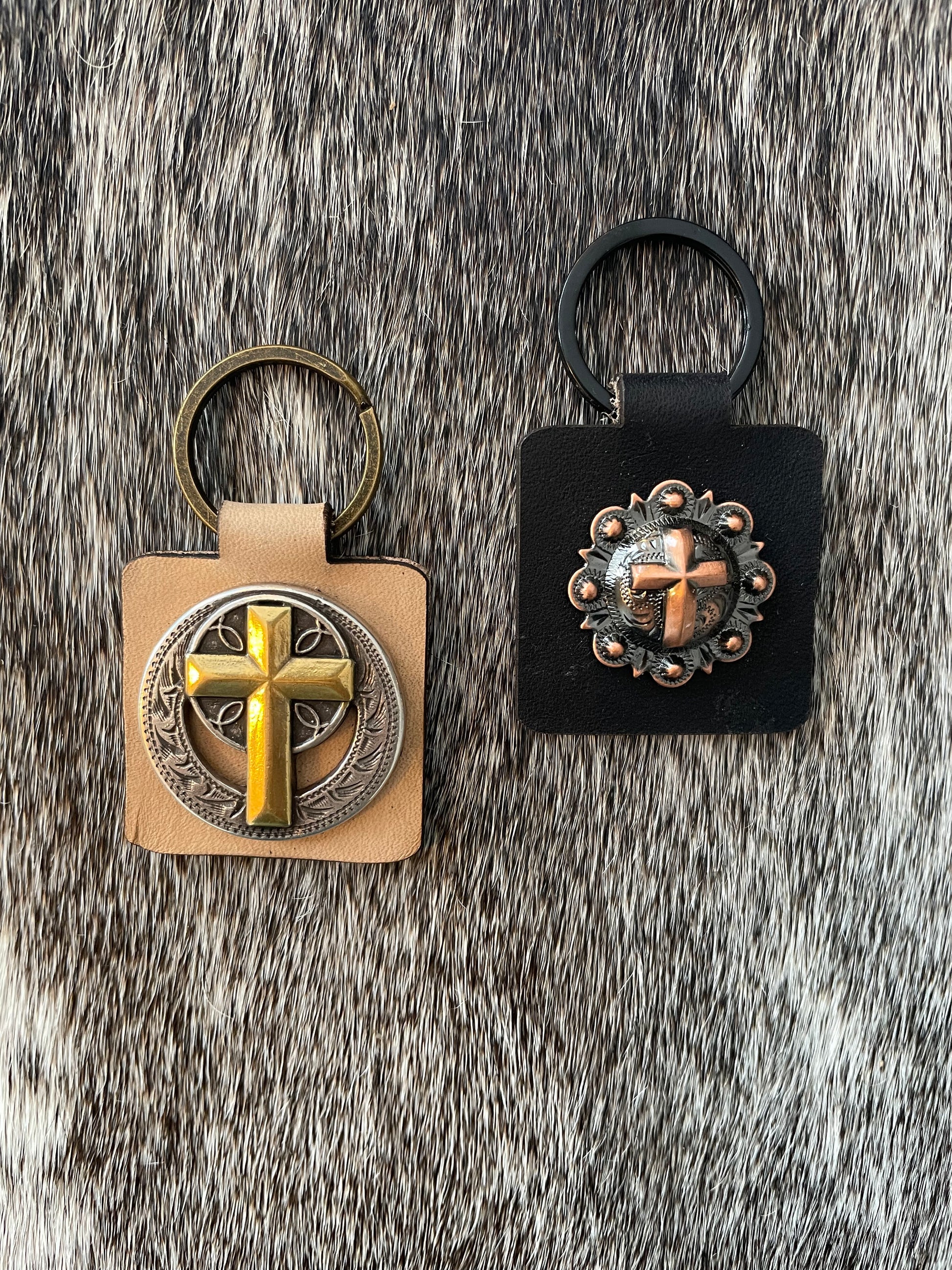 Cross Concho Square Keychains