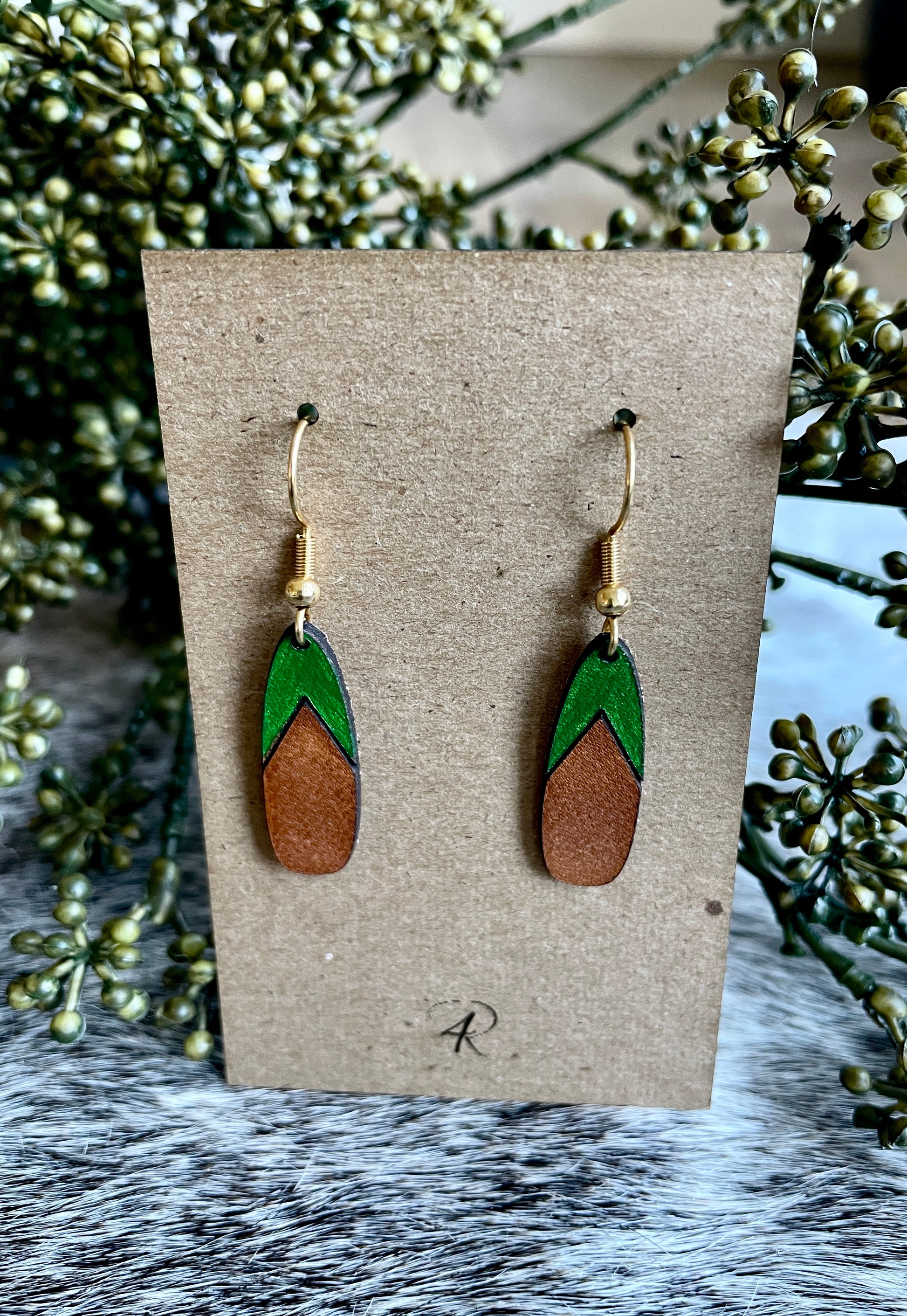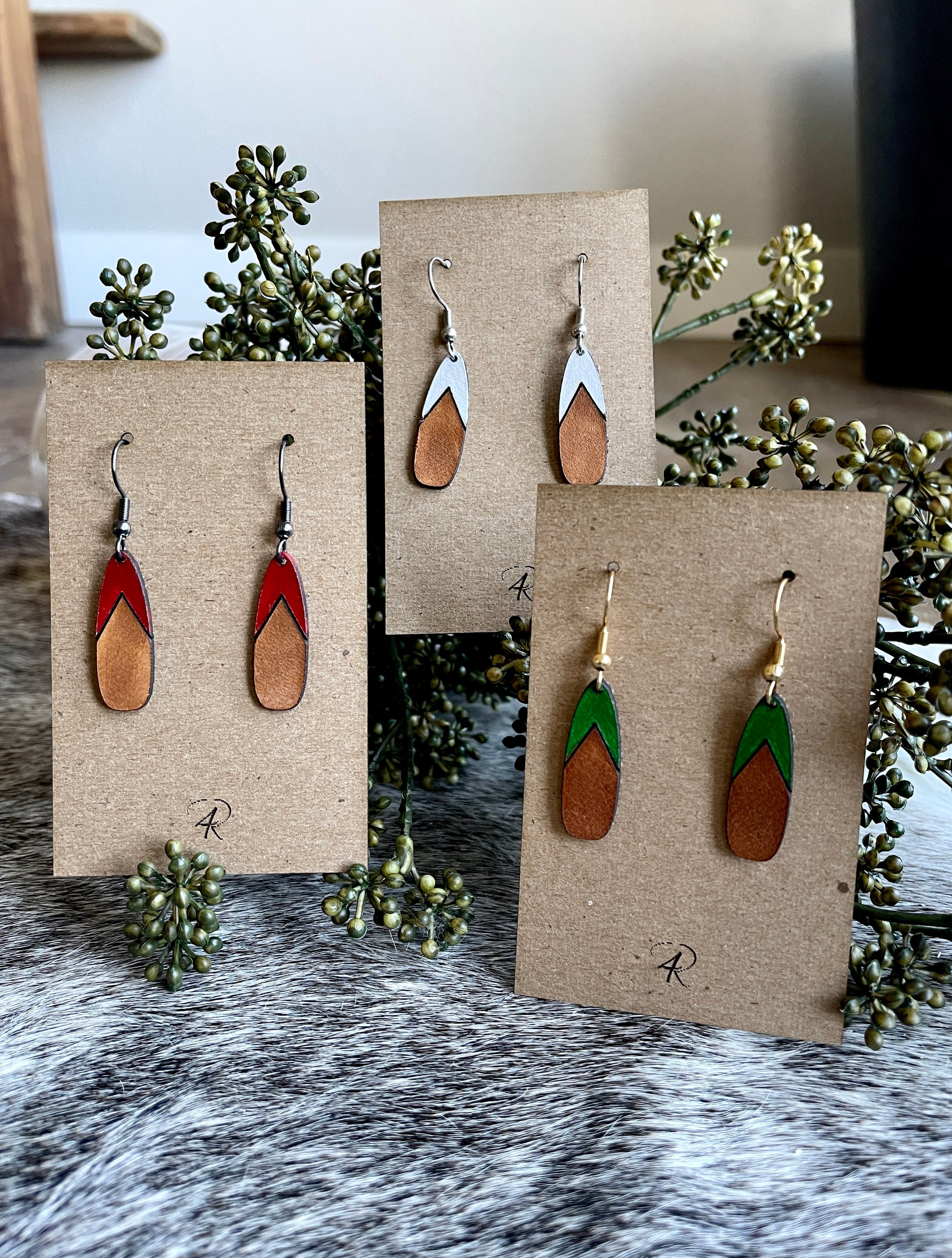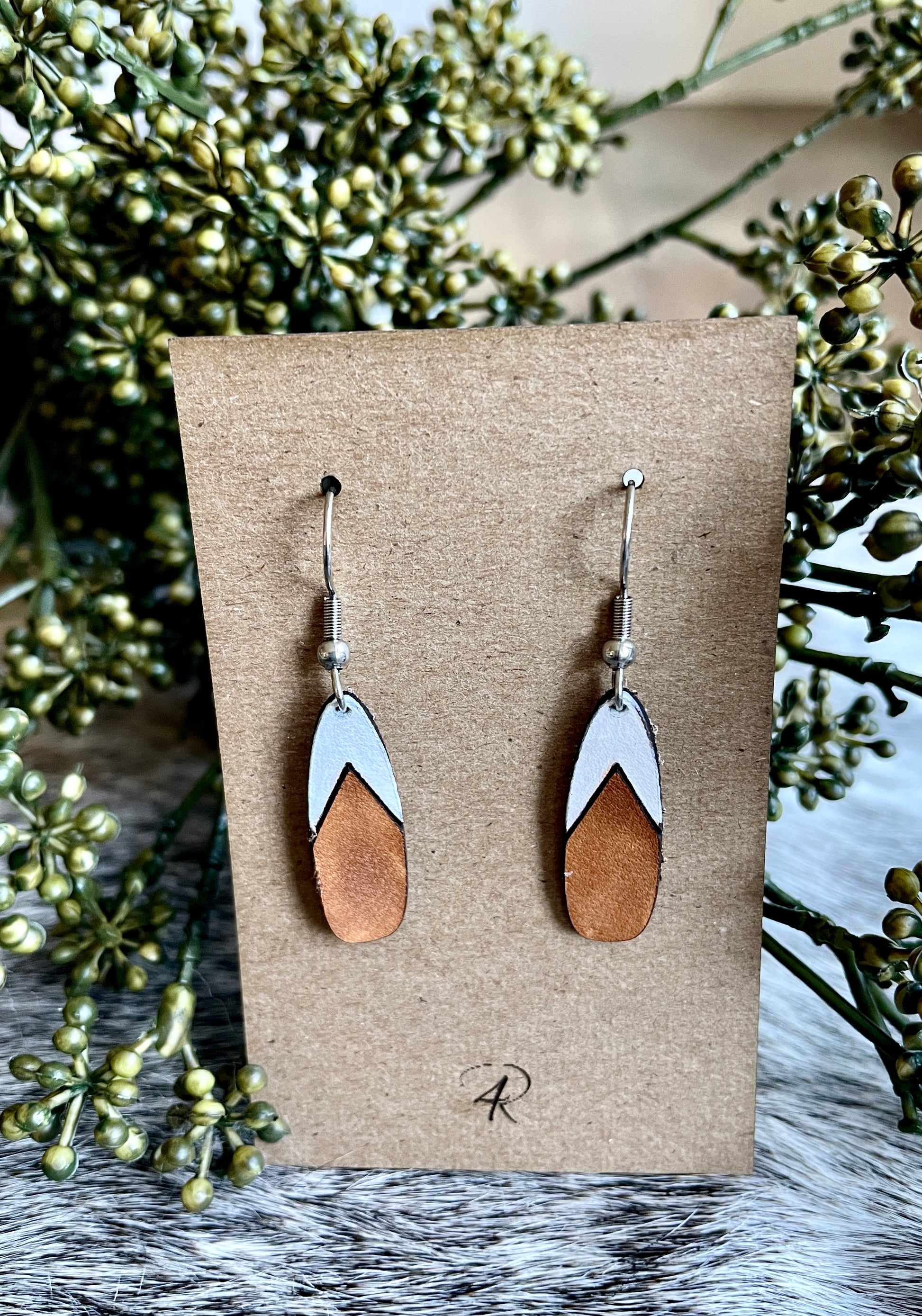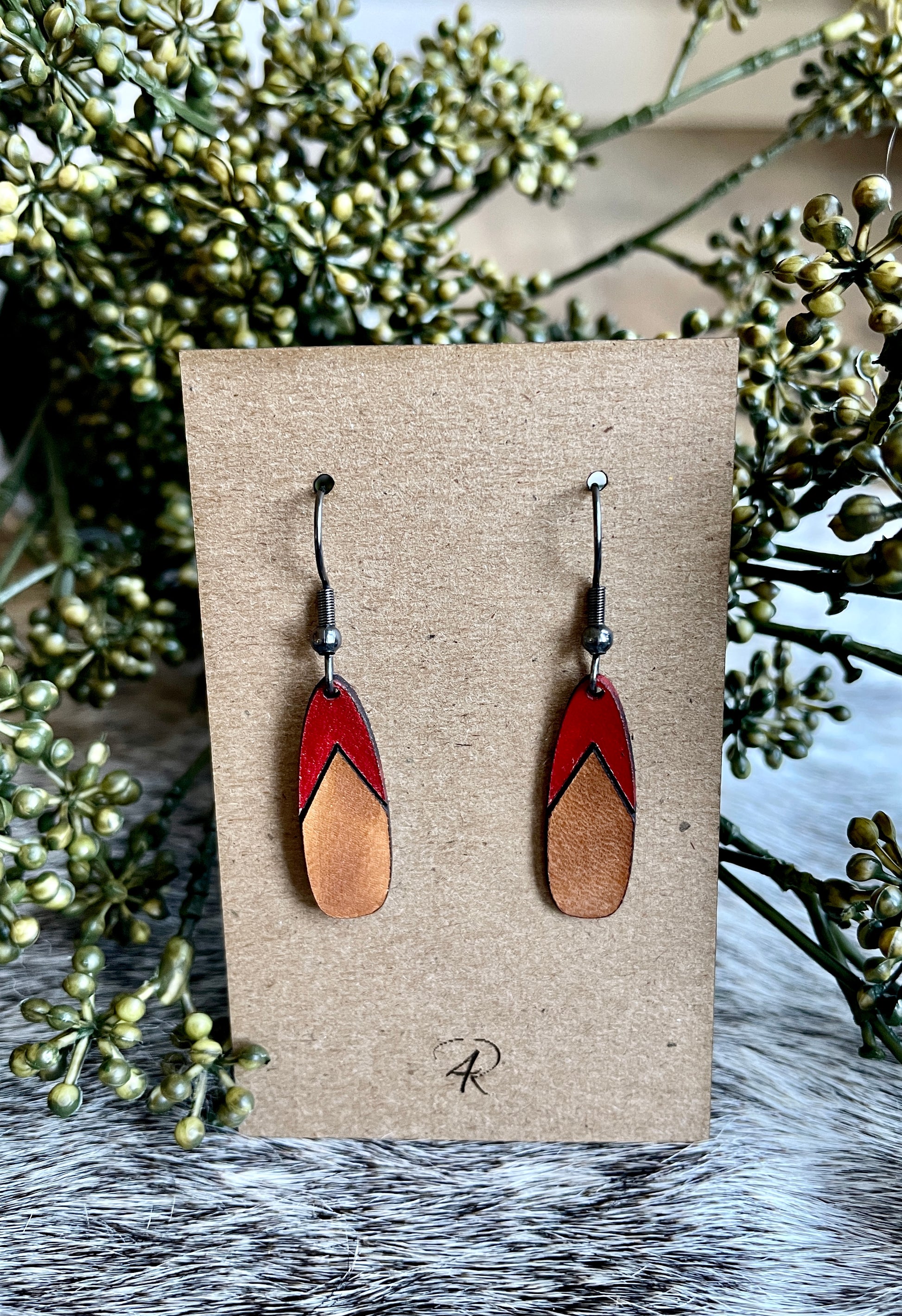 Earrings - Chestnut/Natural/painted top Drop Leather Earrings