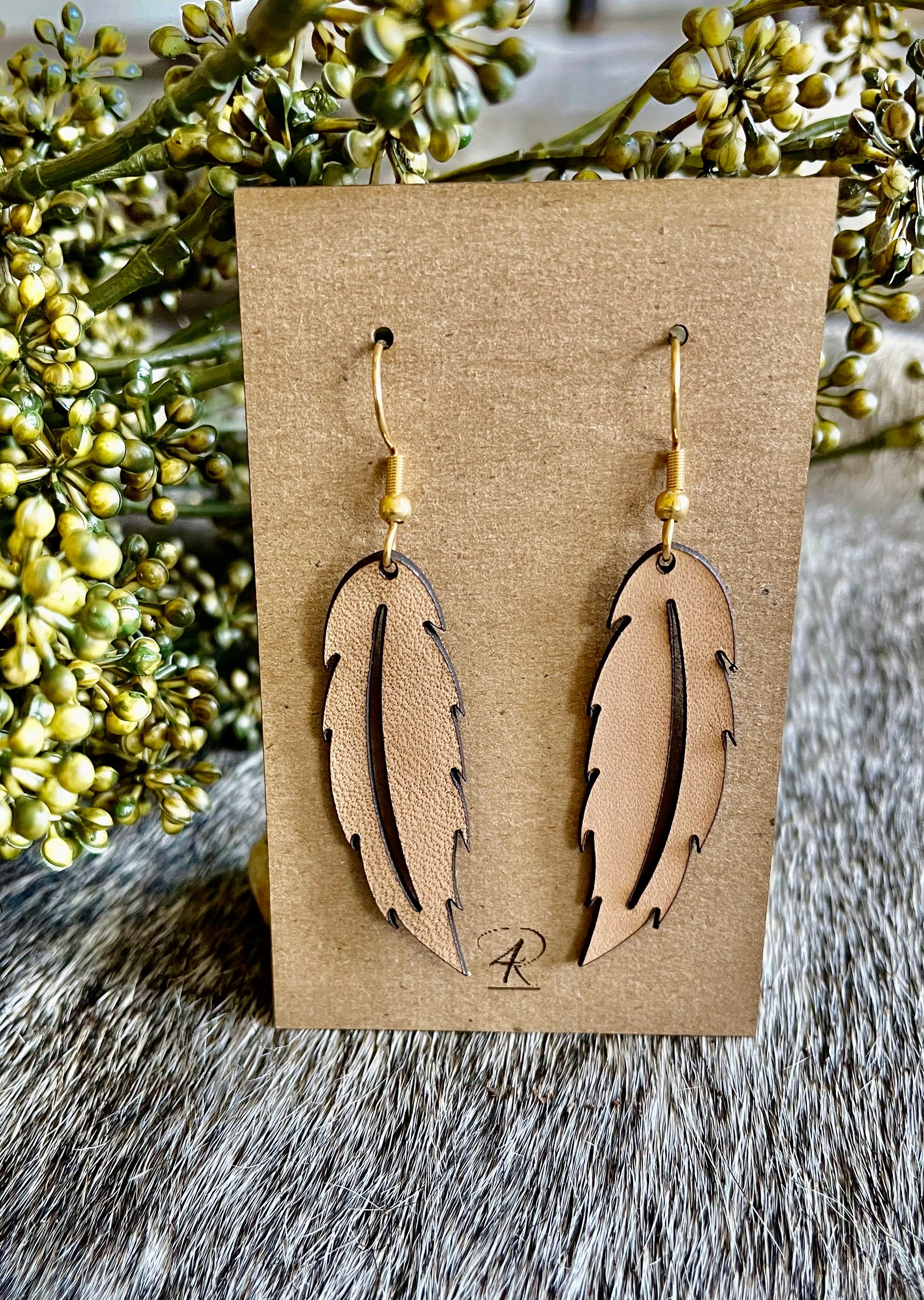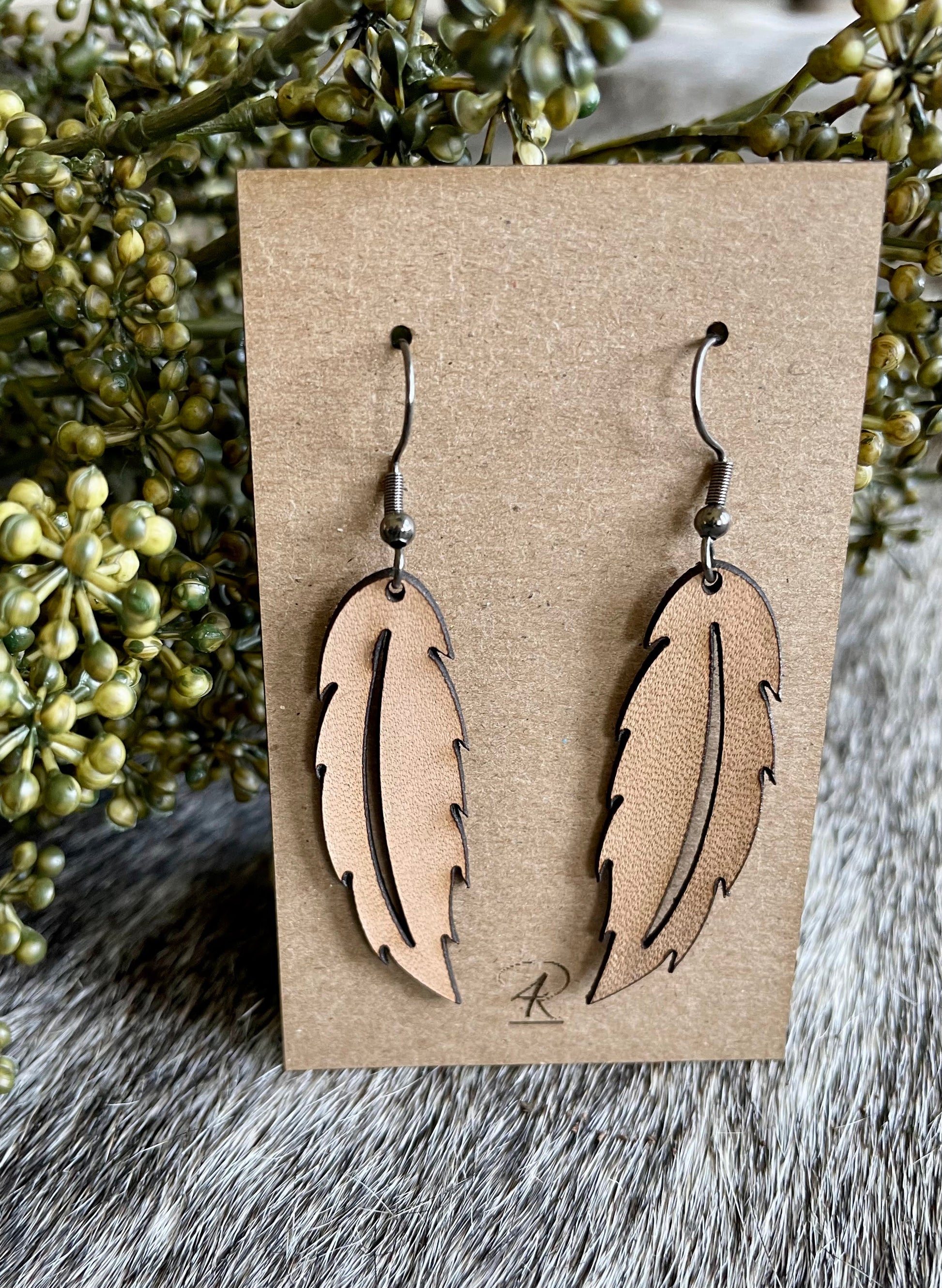 Earrings - Natural Solid Feather Leather Earrings