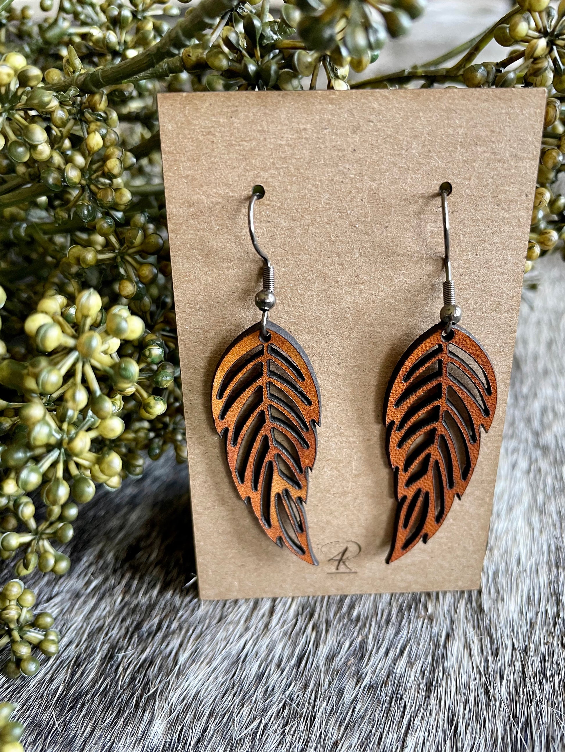 Earrings - Saddle Feathered Leather Earrings