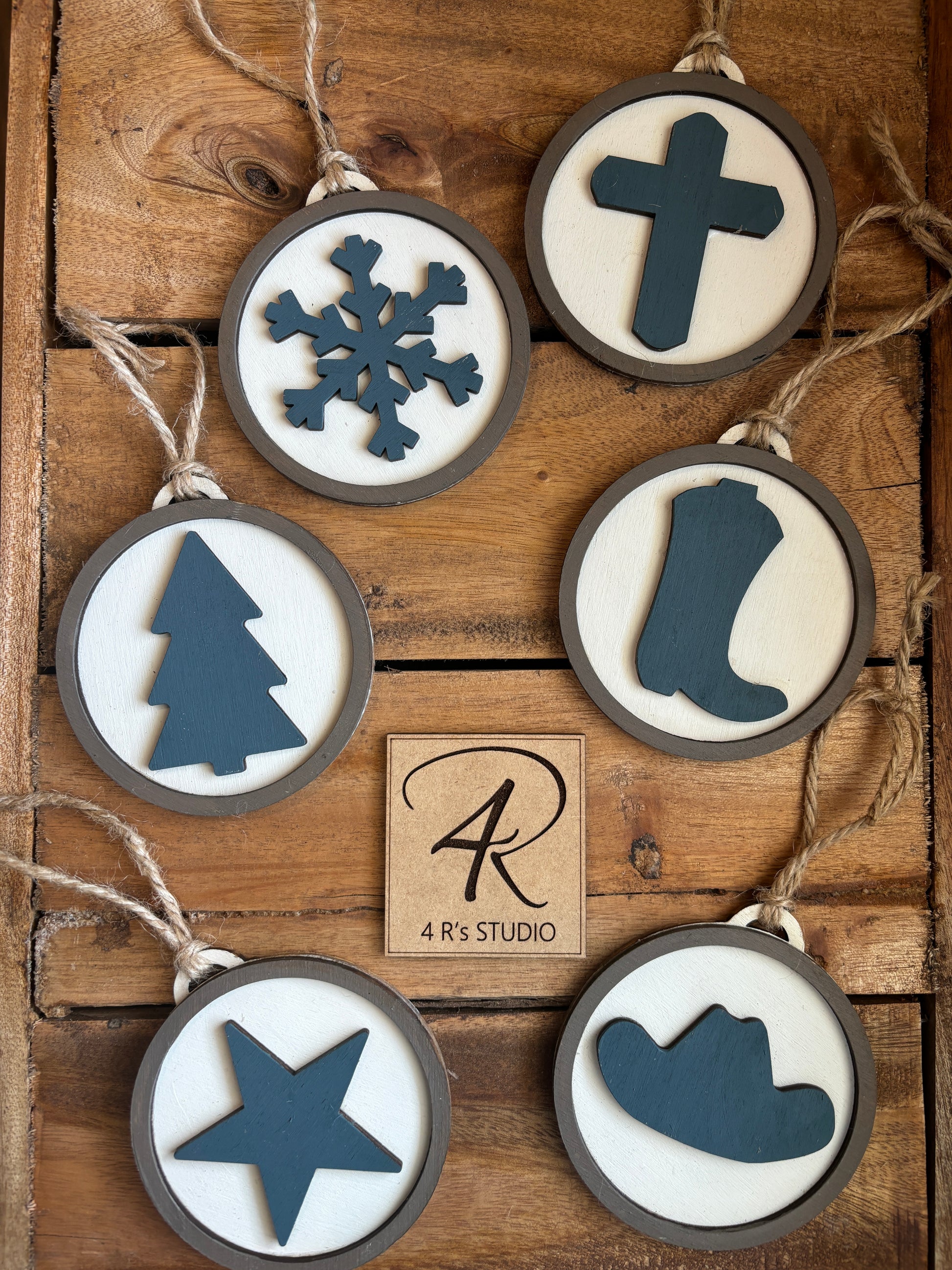 Ornaments - Blue Wood Western Inspired