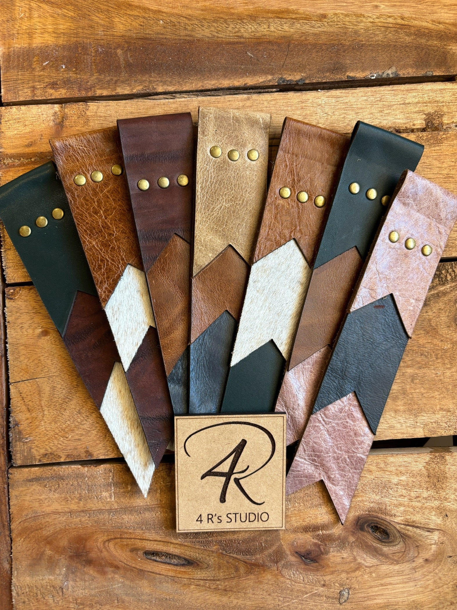 Three layered bookmarks. You can fit a pen through the loop on top.