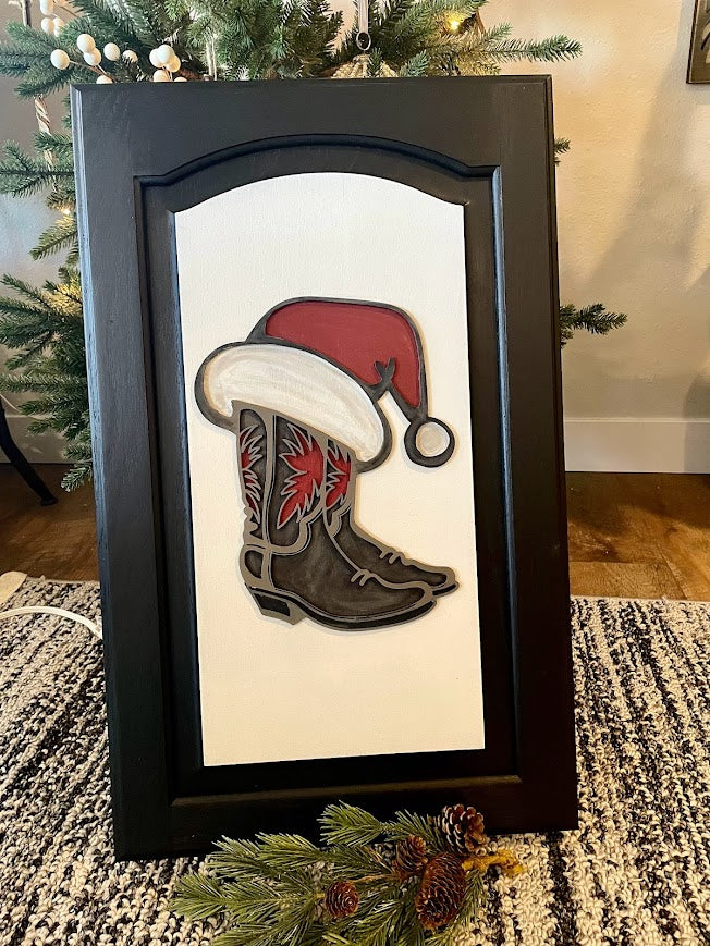Wood Sign - Christmas Cowboy Boots